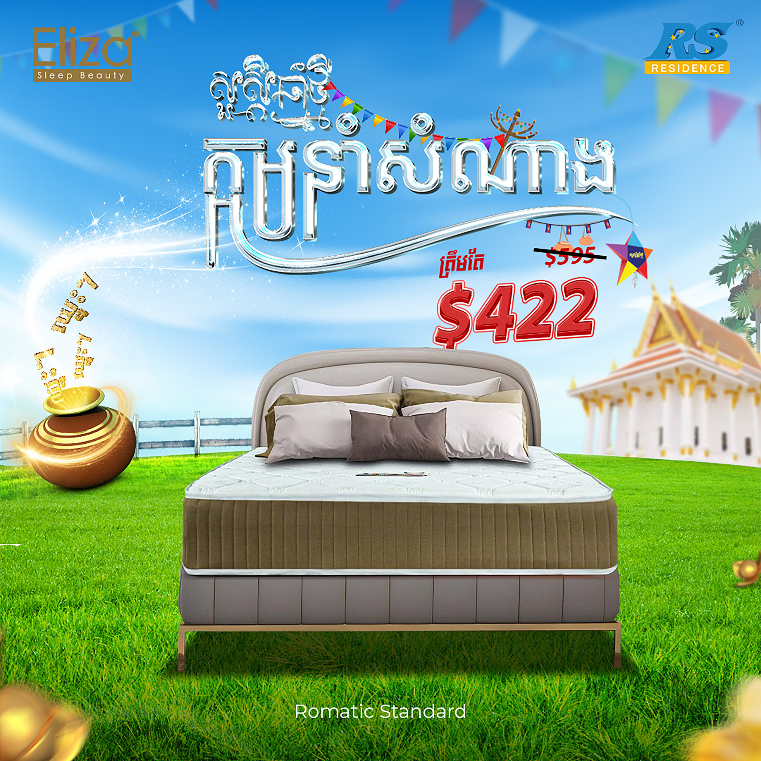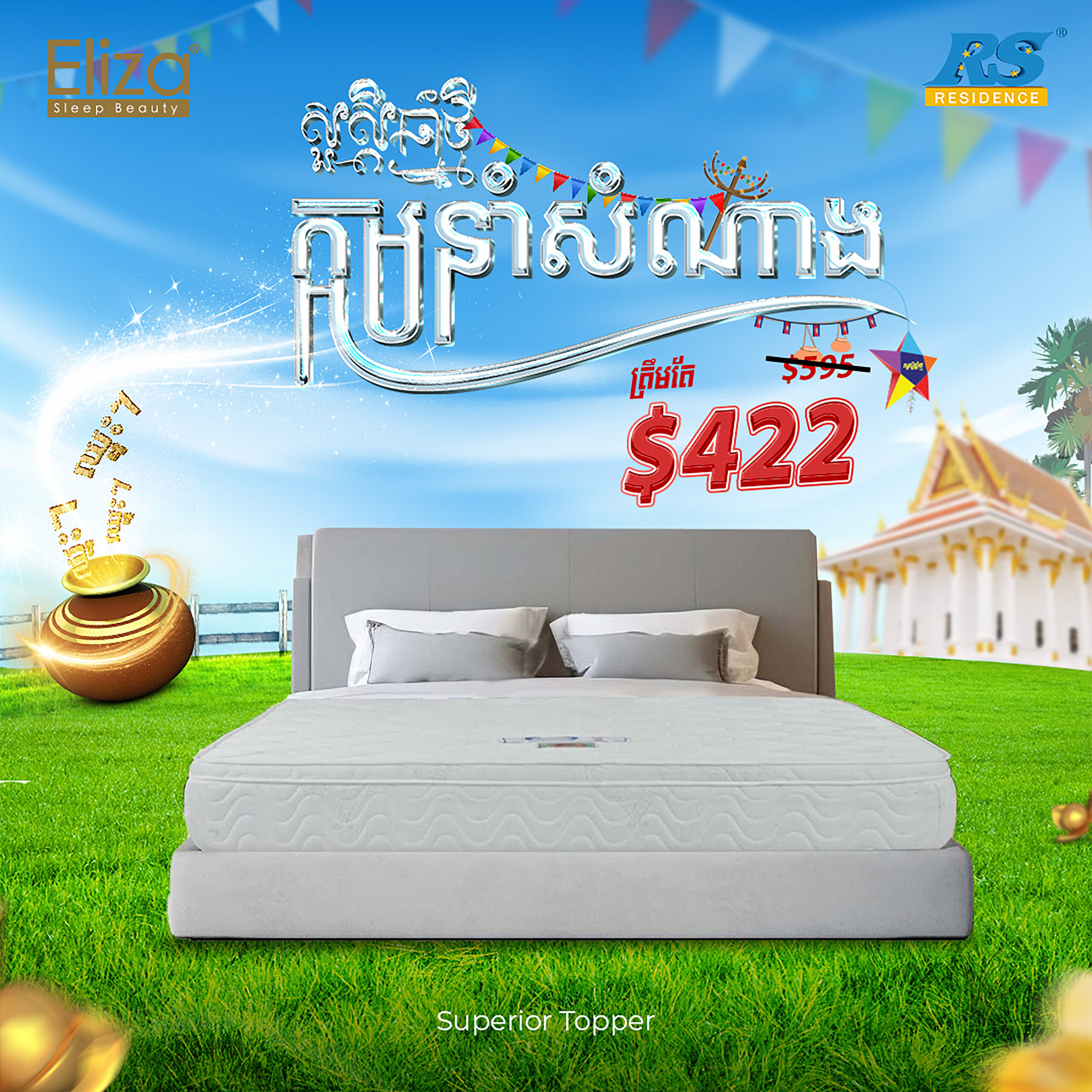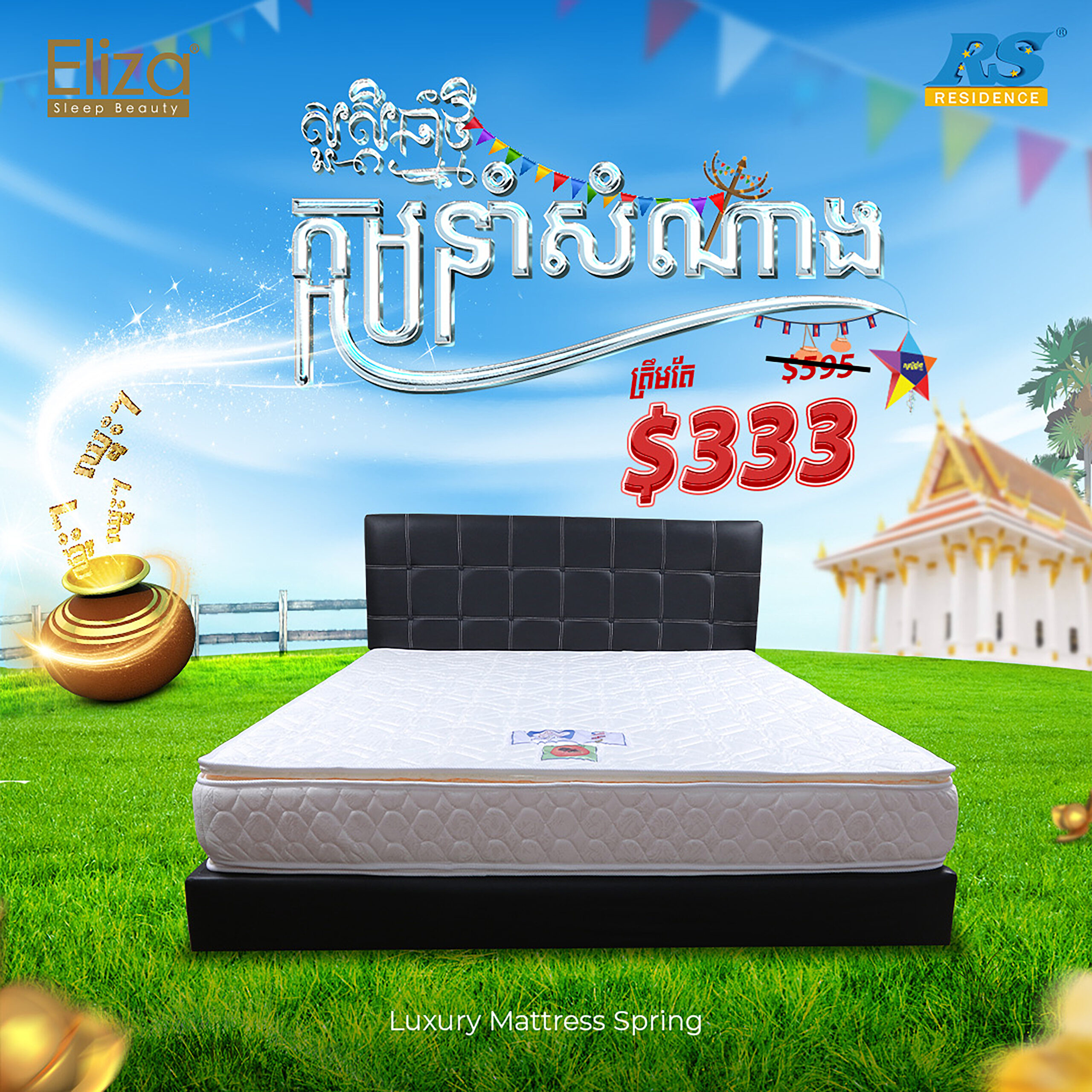 ក្នុងឱកាសចូលឆ្នាំខ្មែរប្រពៃណីជាតិខាងមុខនេះ 𝐑𝐒 𝐑𝐞𝐬𝐢𝐝𝐞𝐧𝐜𝐞 ផ្តល់ជូននូវប្រម៉ូសិនបញ្ចុះតម្លៃយ៉ាងពិសេសទៅពូកម៉ាក Eliza ដែលមានច្រើនជម្រើសជូនទៅកាន់បងៗ ហើយអ្វីដែលកាន់តែពិសេសរាល់ការចំណាយទាំងអស់ លោកអ្នកមានឱកាសឈ្នះរង្វាន់យ៉ាងច្រើនសន្ធឹកសន្ធាប់ជាមួយនឹងក្អមនាំសំណាង។